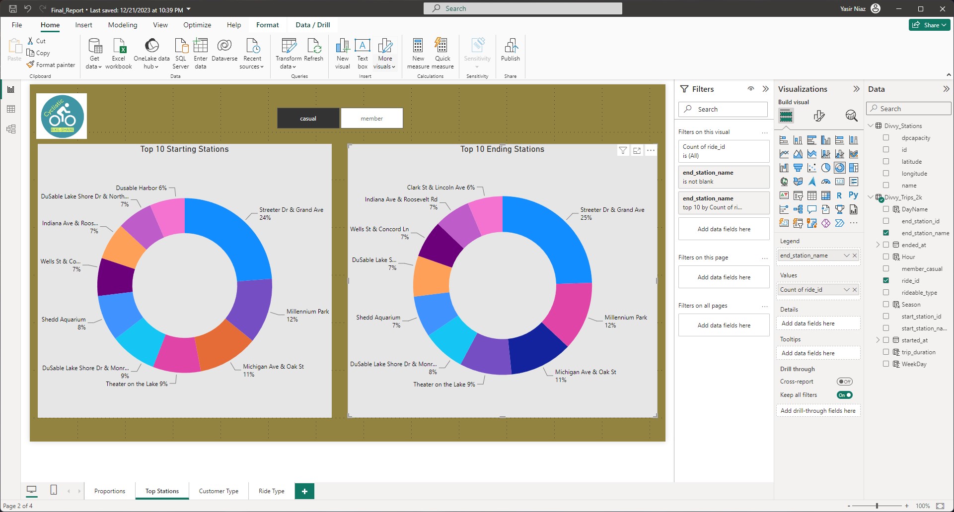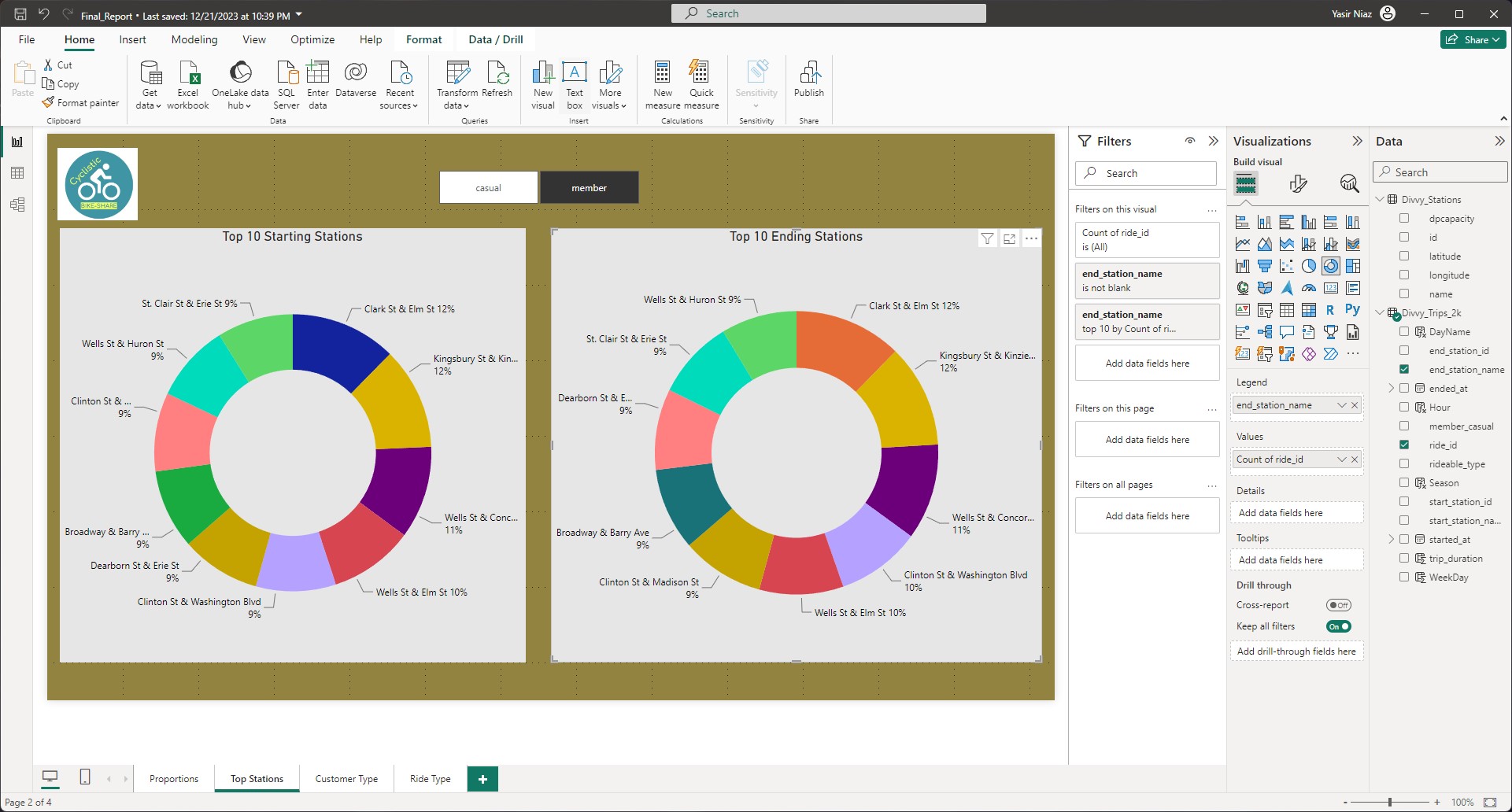 Cyclistic: A bike-share program with over 6,000 bicycles and 600 docking stations in Chicago. The bikes can be unlocked from one station and returned to any other station in the system. Until now, Cyclistic’s marketing strategy relied on building general awareness and appealing to broad consumer segments. One approach that helped make these things possible was the flexibility of its pricing plans: single-ride passes, full-day passes, and annual memberships. Customers who purchase single-ride or full-day passes are referred to as casual riders. Customers who purchase annual memberships are Cyclistic members.