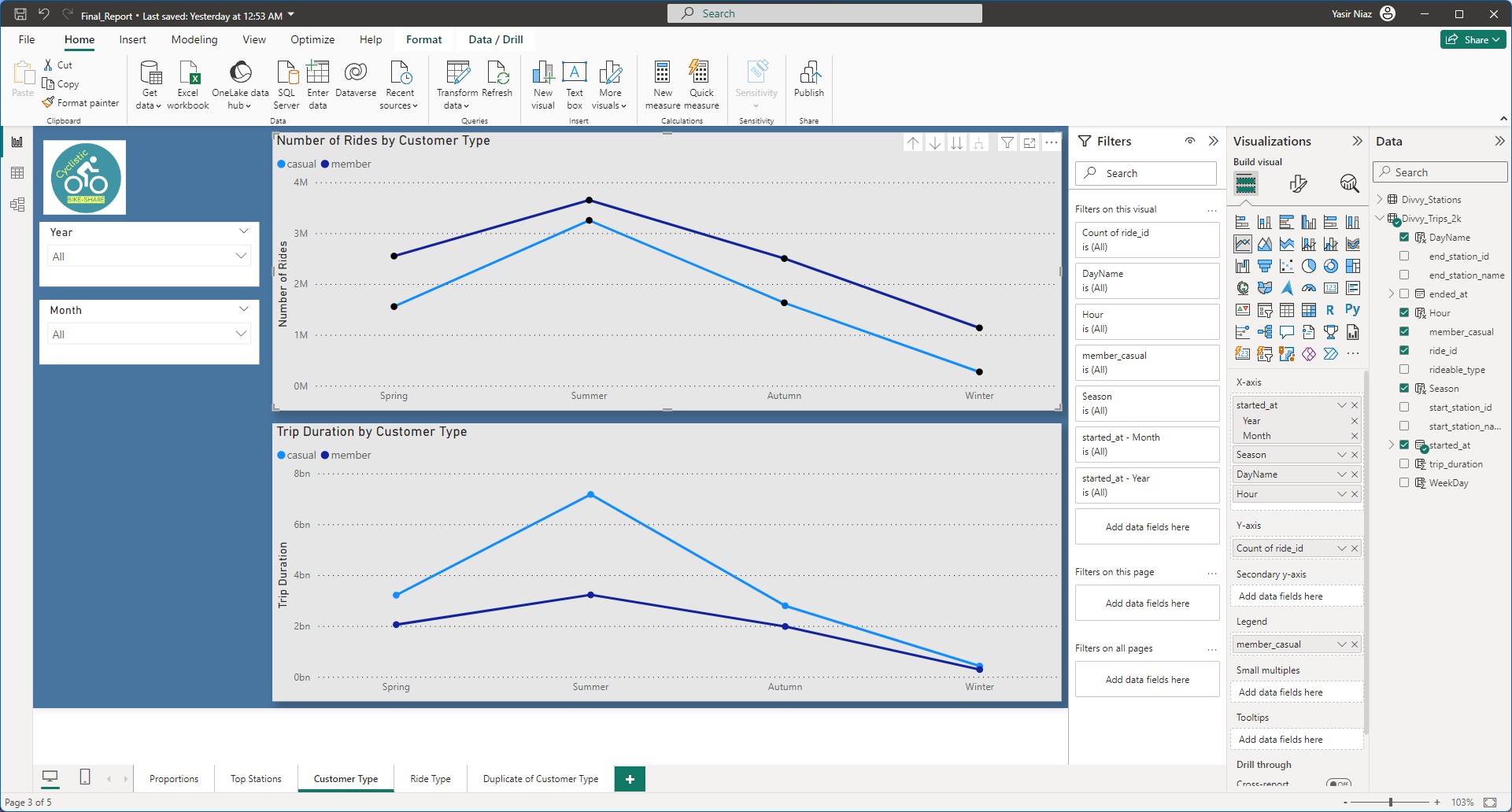 The top chart shows the number of rides and the below chart shows the trip duration.
